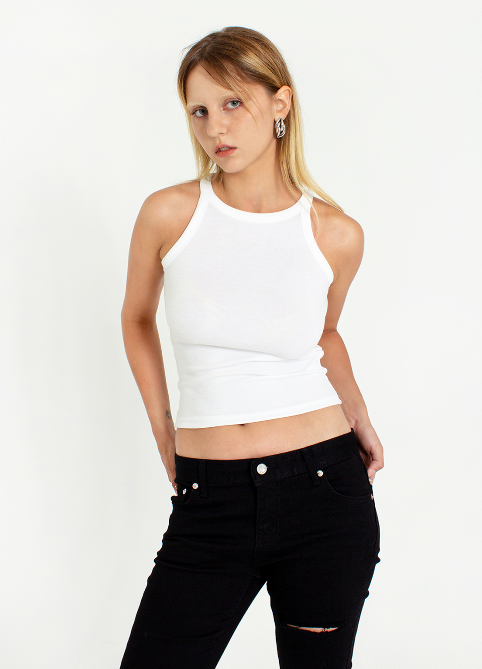 슬리브리스 탱크탑 아이보리
