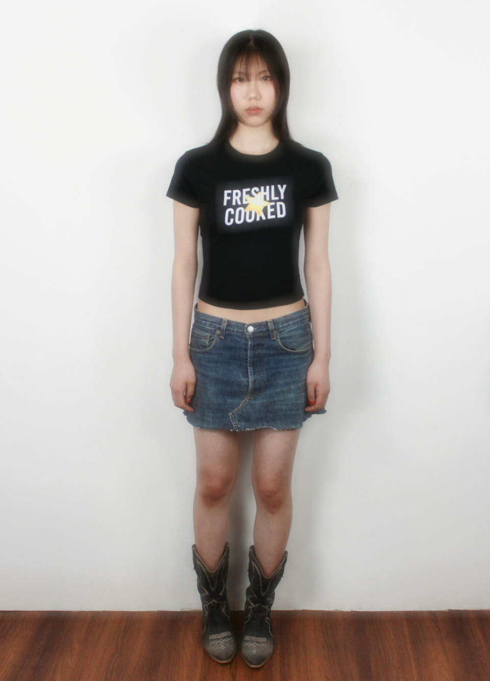 *메탈 스터드와 봉제라인 근처에 프레스 자국이 있을 수 있습니다.