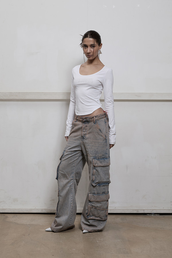 -허리라인 잡힌 슬림핏 실루엣 / 밑단 굴림