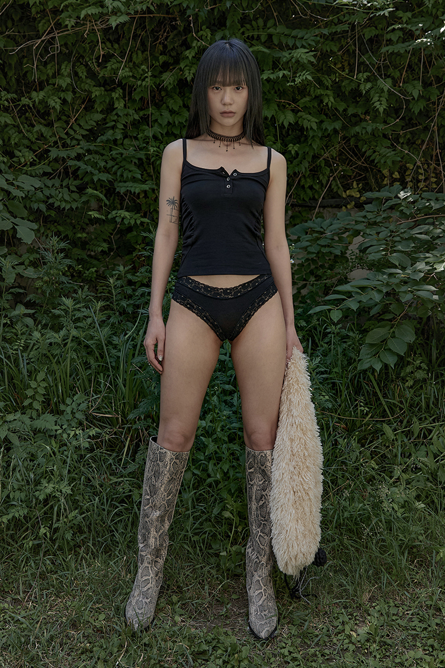 * 메탈 스터드와 봉제라인 근처에 프레스 자국이 있을 수 있습니다. 이는 다리미 자국과 유사하여 세탁 시 사라지고, 공기 중의 습기를 머금으며 천천히 사라집니다.