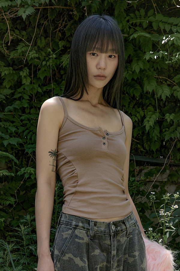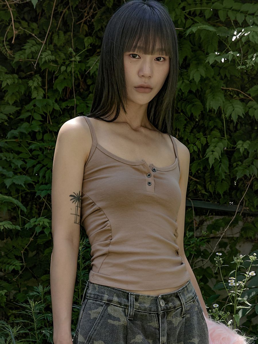 Metal button shirring tank top white