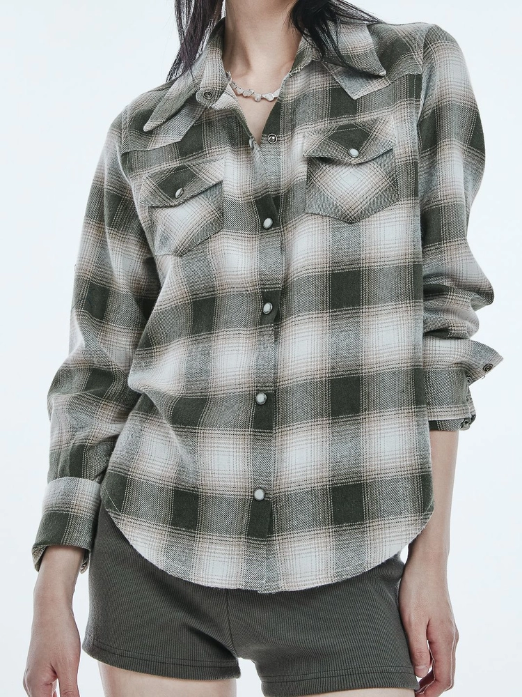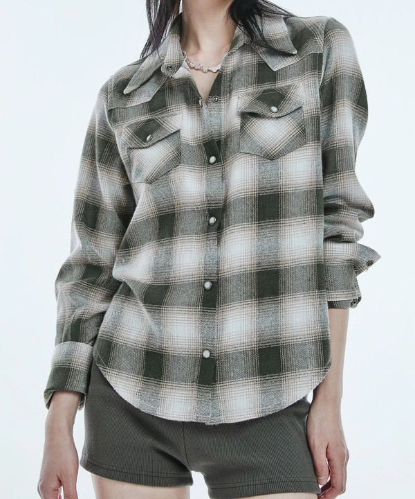 Western ombre check shirt blackSALE